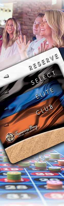 The Players’ Club at Treasure Bay gives you more! Your free membership offers access to Club benefits right away, from Free Slot Play, comps, rooms, dining, amenities and direct mail offers. Plus, gain access to exclusive player events, casino host services and the latest information on upcoming events and promotions. When you join, you’ll also be eligible to receive up to a $500 refund — guaranteed! Details at Player Services.